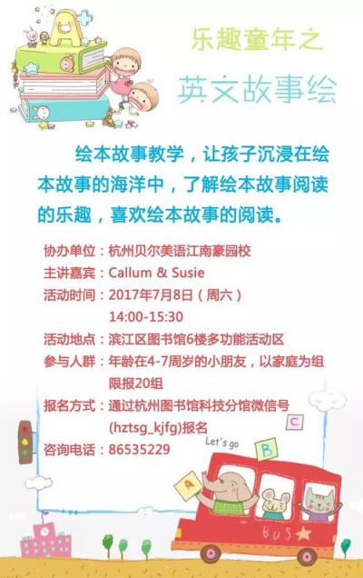 活动地点:滨江区图书馆6楼多功能活动区