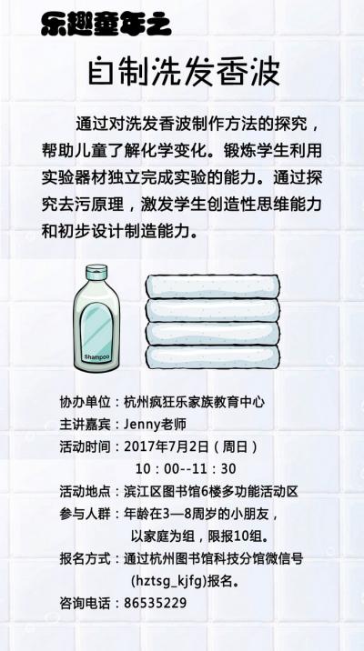 活动地点:滨江区图书馆6楼多功能活动区