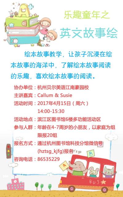 活动地点:滨江区图书馆6楼多功能活动区