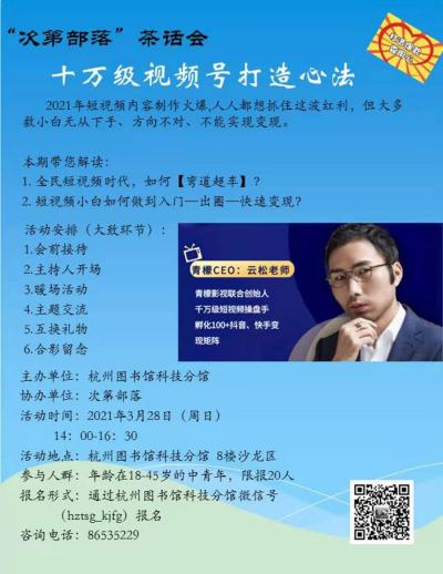 活动地点:杭州图书馆科技分馆8楼沙龙区