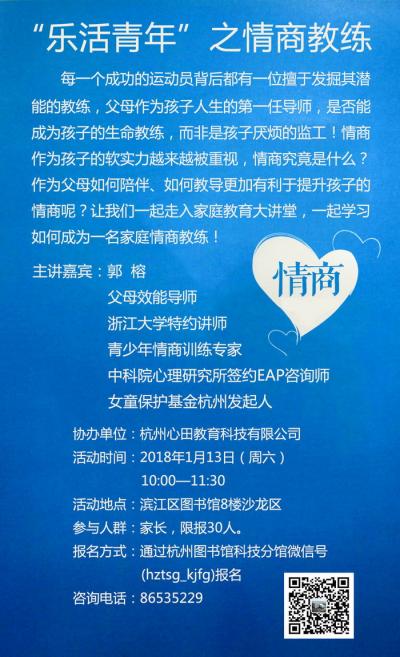 活动地点:滨江区图书馆8楼沙龙区