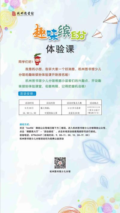 活动地点:杭州图书馆少儿分馆三楼多功能厅(曙光路75号)
