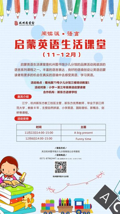 活动地点:曙光路75号杭州图书馆少儿分馆三楼培训教师1