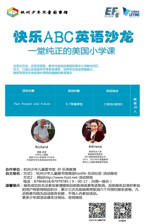 活动地点:曙光路75号杭州少年儿童图书馆三楼培训教室1