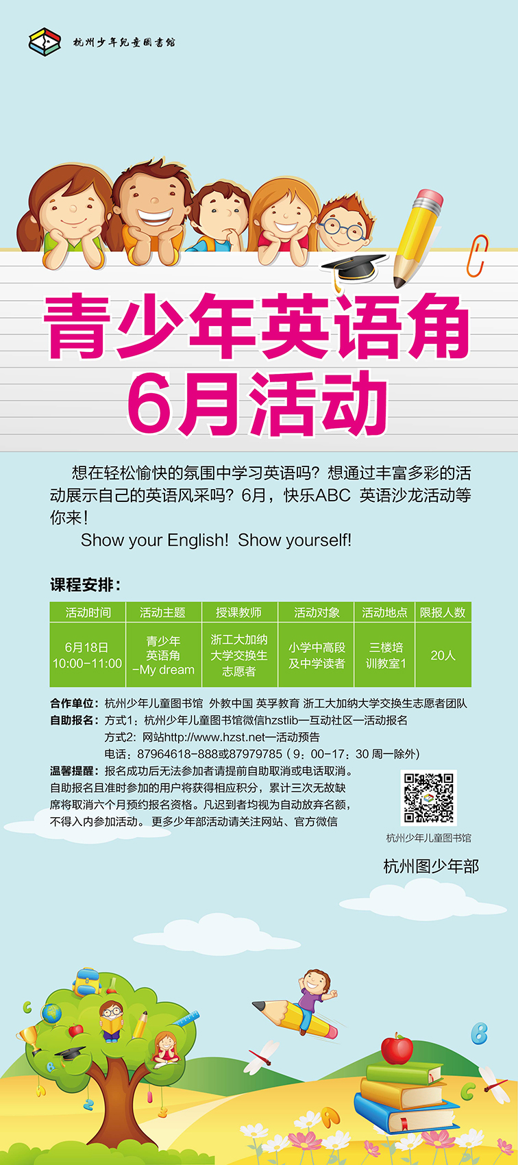 活动地点:曙光路75号杭州少年儿童图书馆三楼培训教室2