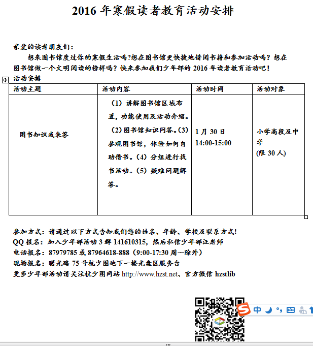 活动地点:曙光路75号杭州少年儿童图书馆少年部