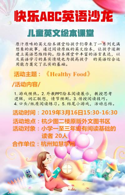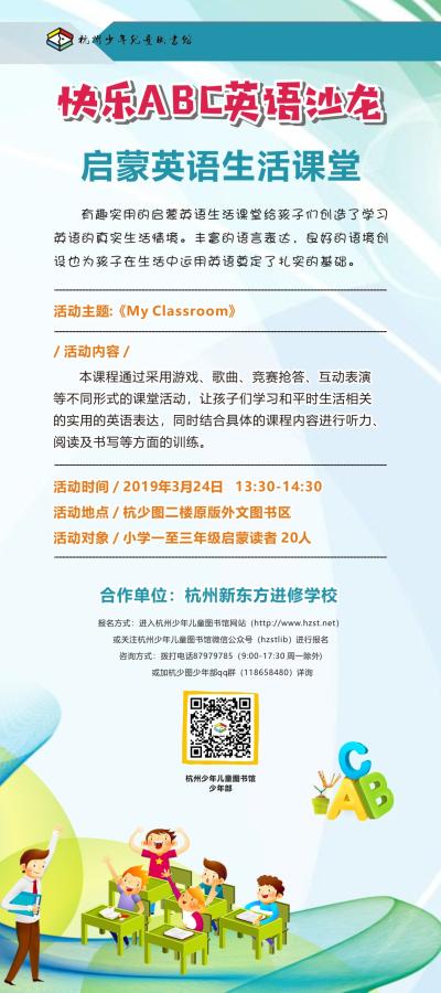 活动地点:曙光路75号杭州少年儿童图书馆二楼原版外文图书区