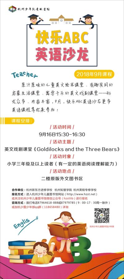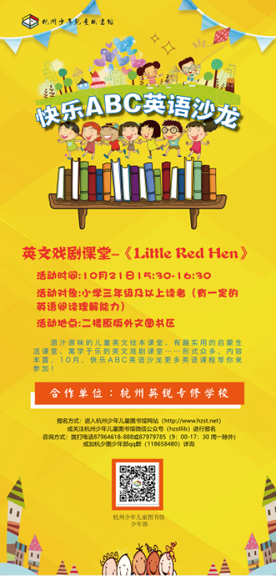 活动地点:曙光路75号杭州少年儿童图书馆二楼原版外文图书区