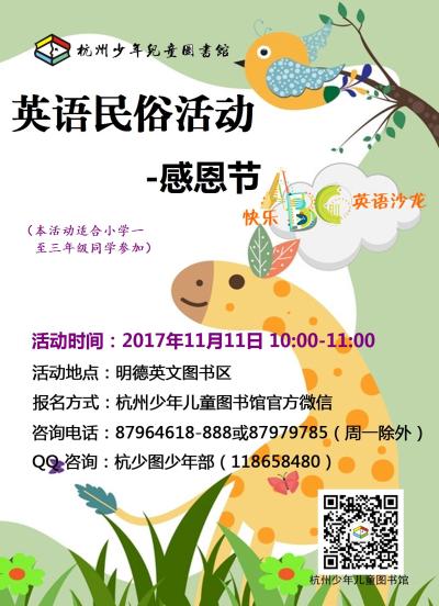 活动地点:杭州少年儿童图书馆明德英文图书区