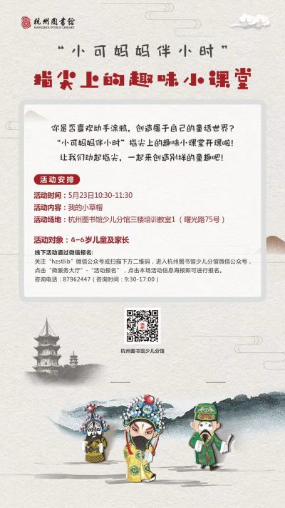 活动地点:杭州图书馆少儿分馆三楼培训教室1(曙光路75号)