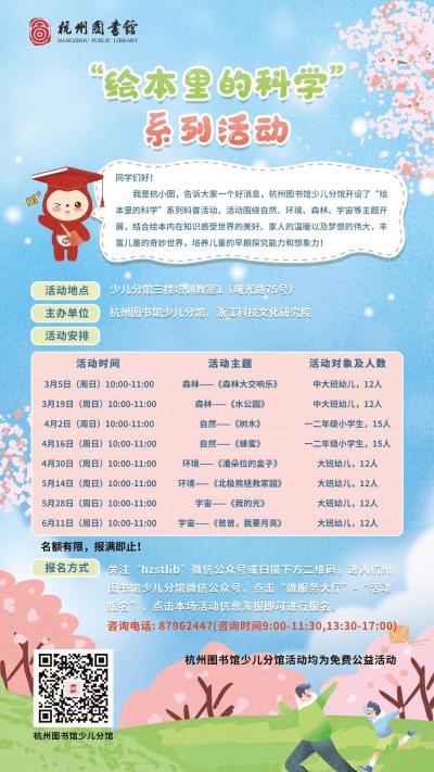 活动地点:杭州图书馆少儿分馆(曙光路75号)三楼多功能厅