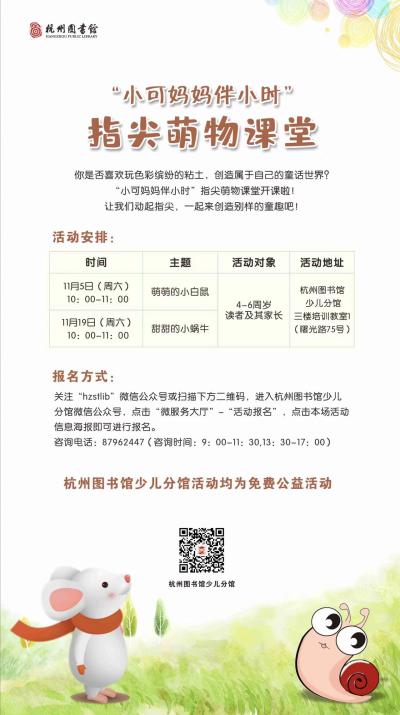 活动地点:杭州图书馆少儿分馆三楼培训教室1(曙光路75号)