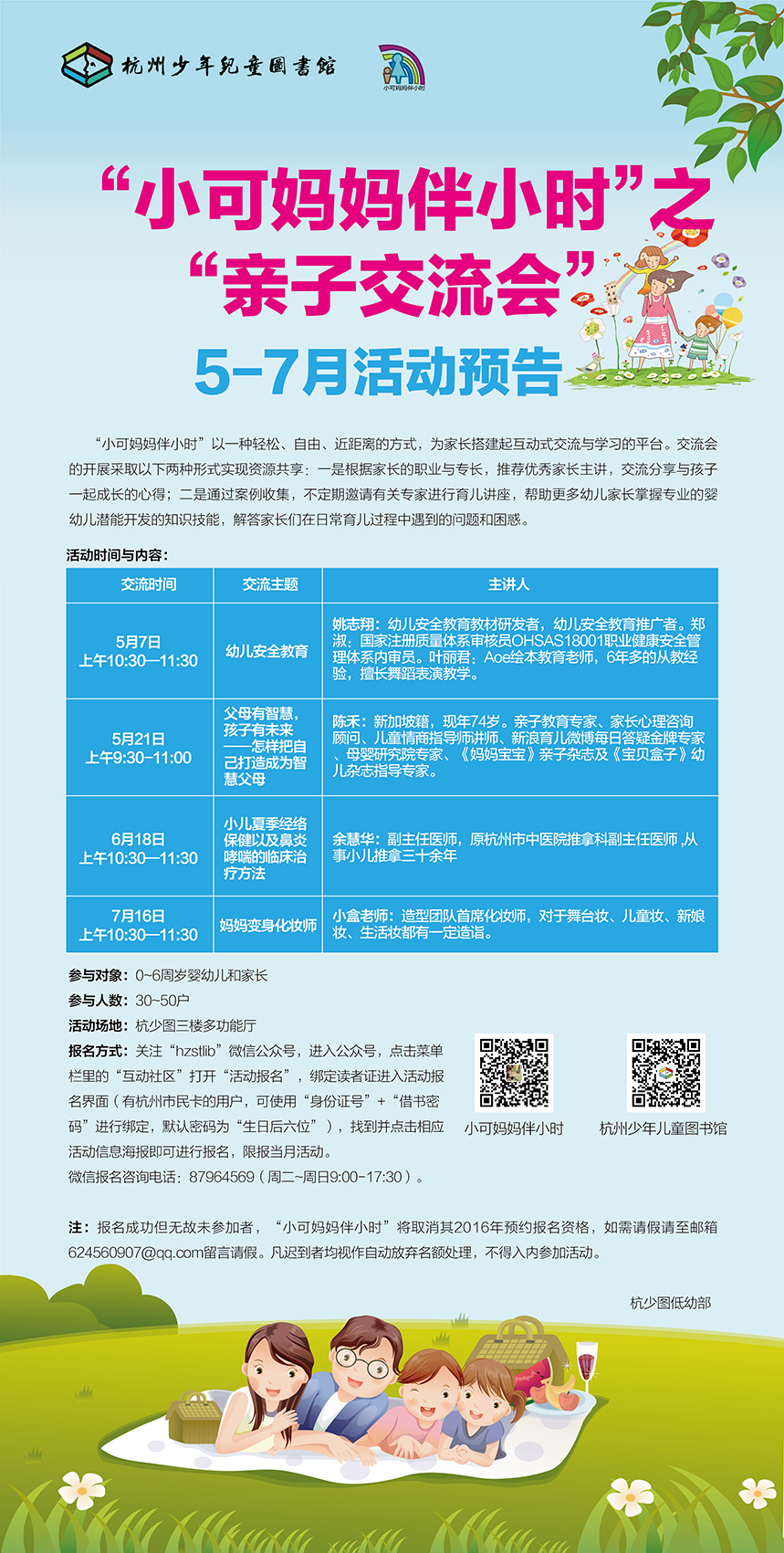 活动地点:曙光路75号杭州少年儿童图书馆三楼多功能厅