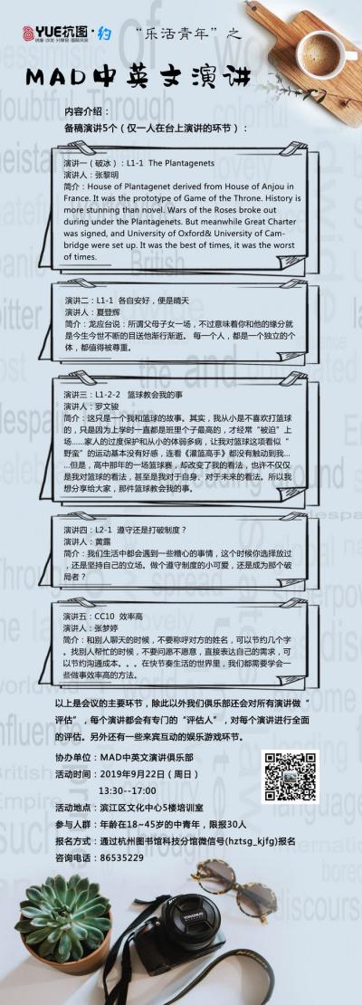 活动地点:杭州图书馆读者交流区六(市民中心)
