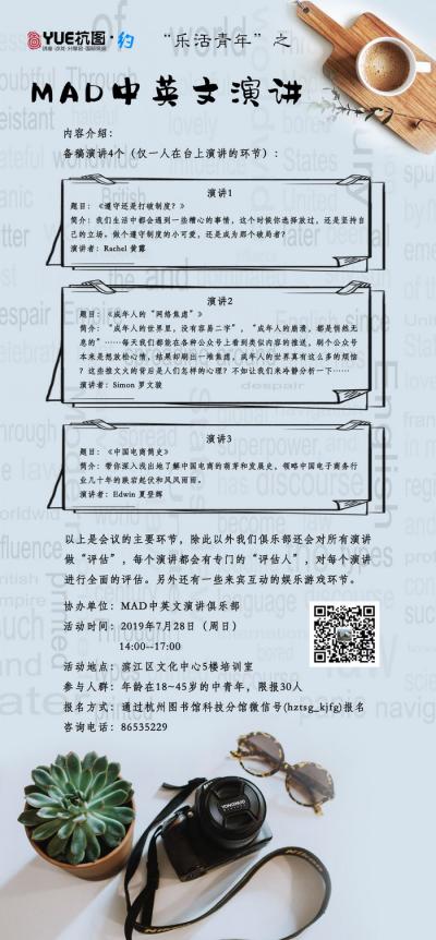 活动地点:杭图读者交流区6(市民中心)
