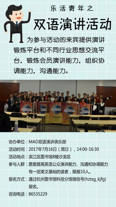 活动地点:杭州图书馆读者交流区(市民中心)