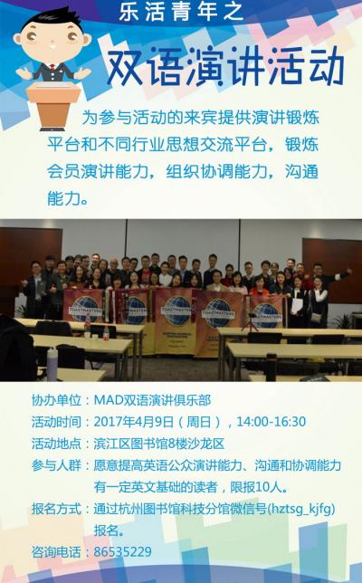 活动地点:滨江区图书馆8楼沙龙区