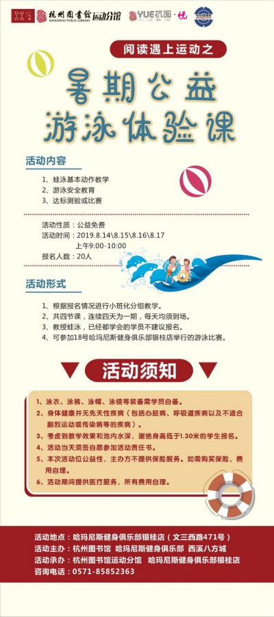 活动地点:杭图运动分馆(文一西路与荆长大道交汇处 西溪八方城6幢112号)