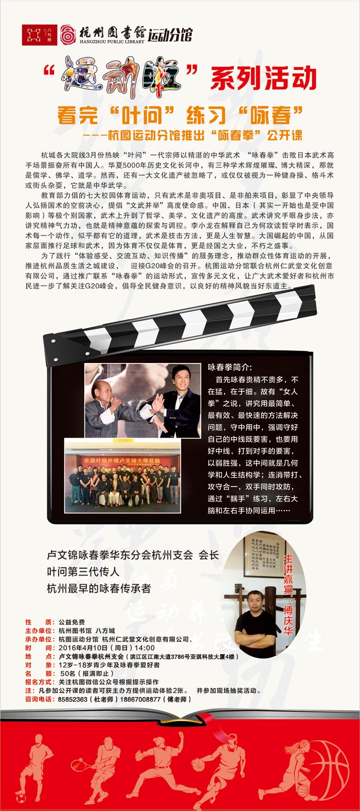 活动地点:卢文锦咏春拳杭州支会(详见海报)