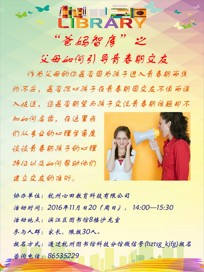 活动地点:滨江区图书馆8楼沙龙室