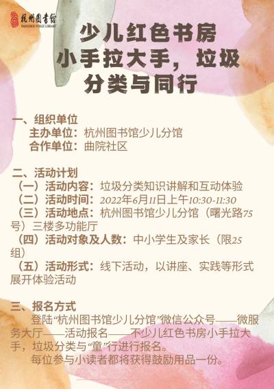 活动地点:杭州图书馆少儿分馆(曙光路75号)三楼培训教室1
