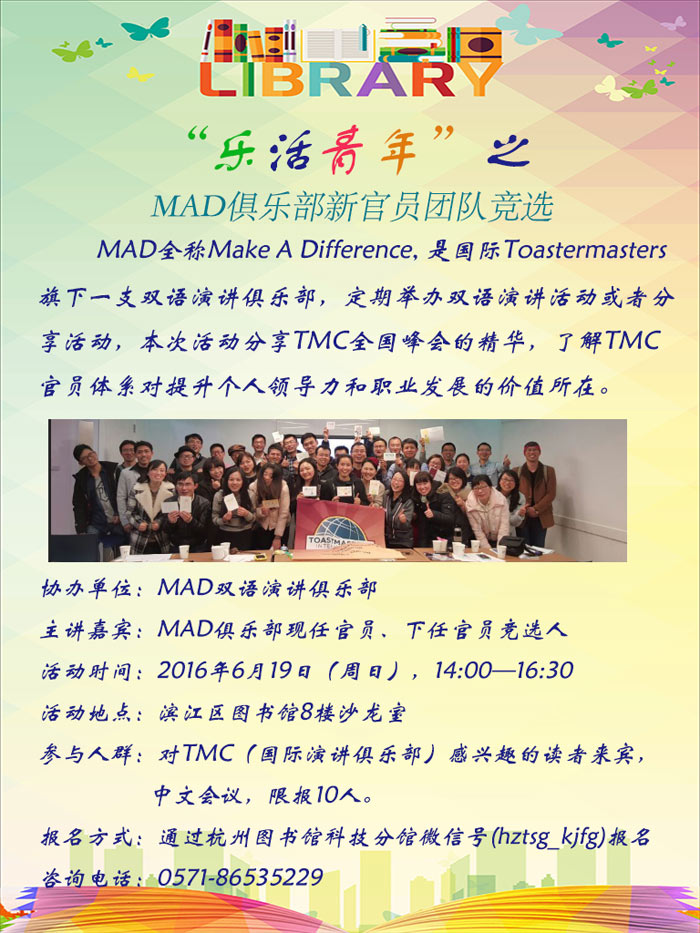 活动地点:杭州市滨江区图书馆8楼沙龙室