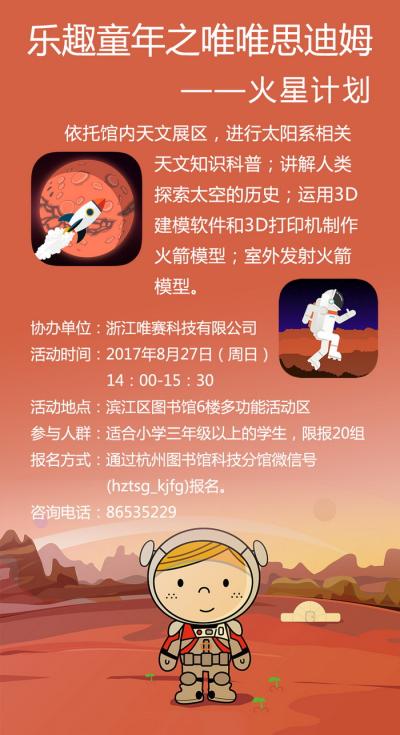 活动地点:滨江区图书馆6楼多功能活动区