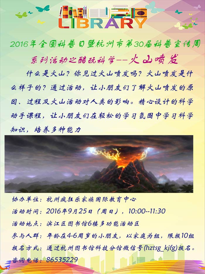 活动地点:滨江区图书馆6楼多功能活动区