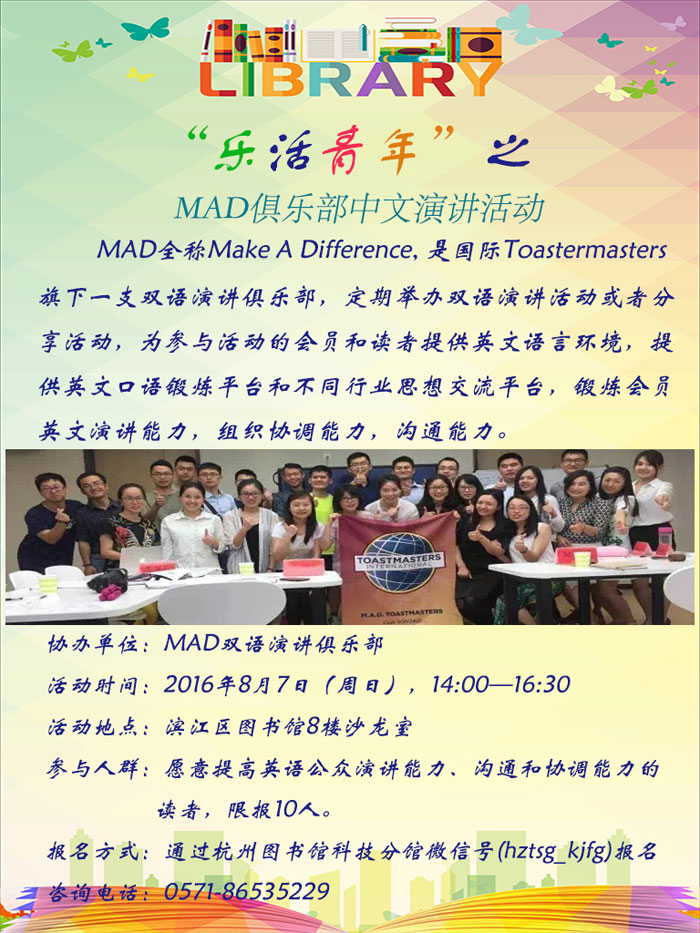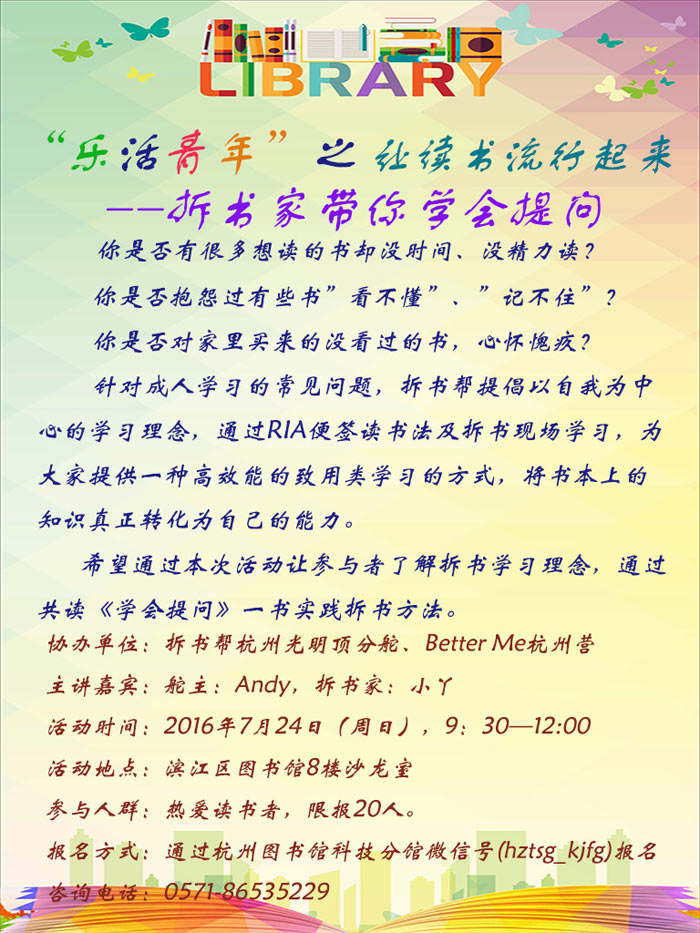 活动地点:滨江区图书馆8楼沙龙室