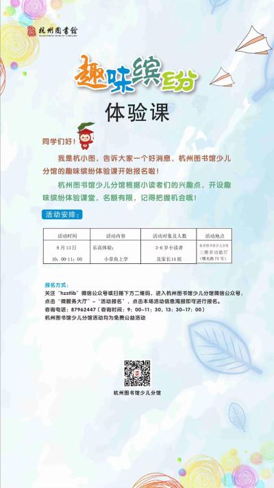 活动地点:杭州图书馆少儿分馆三楼多功能厅(曙光路75号)