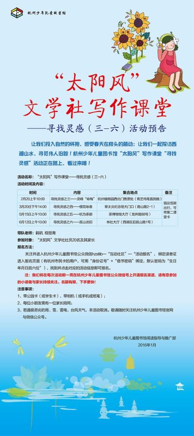 活动地点:杭州少年儿童图书馆三楼培训室(一)
