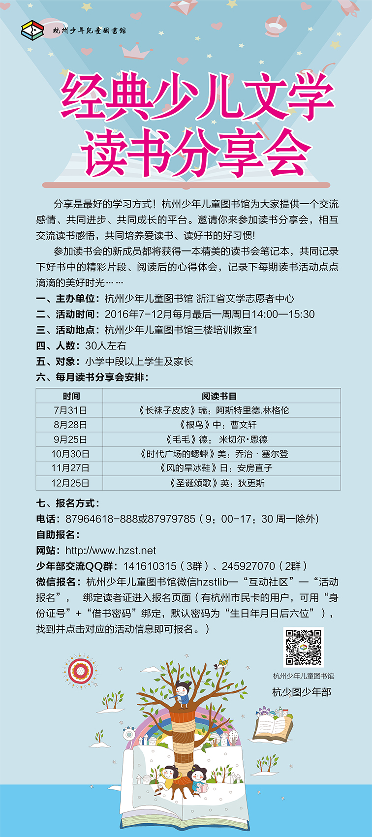 活动地点:杭州少年儿童图书馆三楼多功能厅