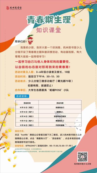 活动地点:杭州图书馆少儿分馆三楼多功能厅(曙光路75号)